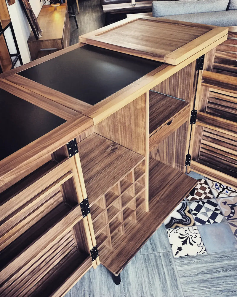 Découvrez notre collection exclusive de buffets et meubles bar en bois massif, où l'élégance intemporelle rencontre la robustesse. Chaque pièce est soigneusement fabriquée à partir de bois de haute qualité, offrant une finition impeccable qui met en valeur la beauté naturelle du matériau. Les buffets allient fonctionnalité et style avec leurs multiples compartiments de rangement, idéaux pour organiser vos affaires tout en ajoutant une touche sophistiquée à votre intérieur. Nos meubles bar, quant à eux, sont conçus pour créer des moments conviviaux, avec des espaces de rangement astucieux pour vos bouteilles et accessoires. Cette collection est parfaite pour ceux qui cherchent à allier design raffiné et praticité dans leur espace de vie.
